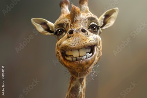 Naklejka premium Smiling Cartoon Giraffe with Big Eyes in Warm Autumn Light