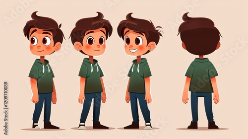© Eden, Naklejka premium Smiling Cartoon Kid Character - Front View Boy Smiling in V Shape Shirt