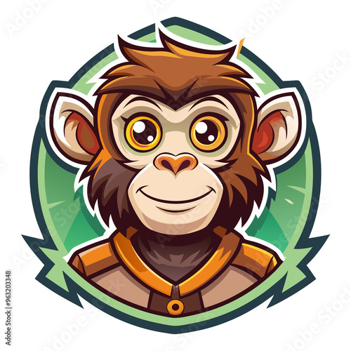 © Socitysh, Fototapeta premium Smiling Cartoon Monkey with Brown Fur and Orange Shirt
