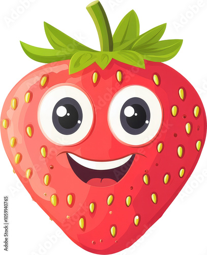 © cac_tus, Fototapeta premium Smiling cartoon strawberry with big eyes on transparent background