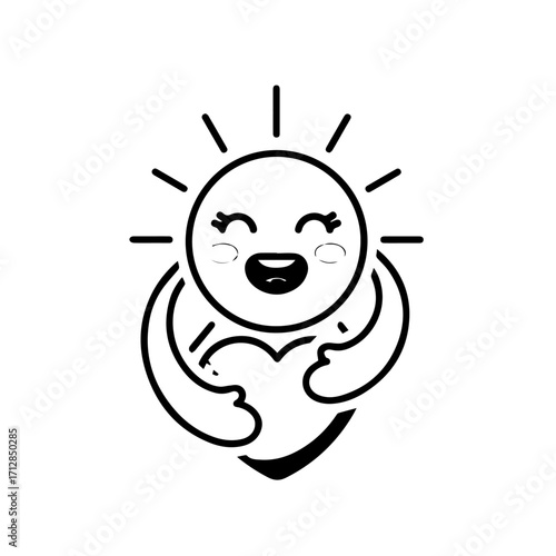 © atvproject, Fototapeta premium Smiling Cartoon Sun Character Embracing a Heart with Joyful Expression.