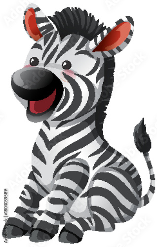 Naklejka premium Smiling Cartoon Zebra Sitting with Cheerful Expression