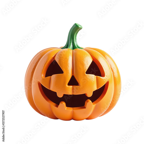 © Andrey, Fototapeta premium Smiling carved pumpkin isolated on black background. Perfect for Halloween decorations.