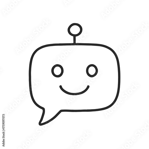 © Bay, Obraz premium Smiling chatbot character in speech bubble outline design