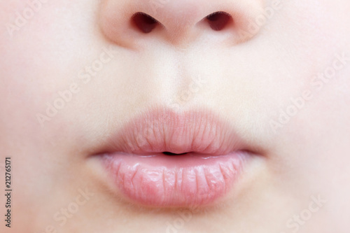 © ninell, Naklejka premium Smiling child close-up. Lips close-up.