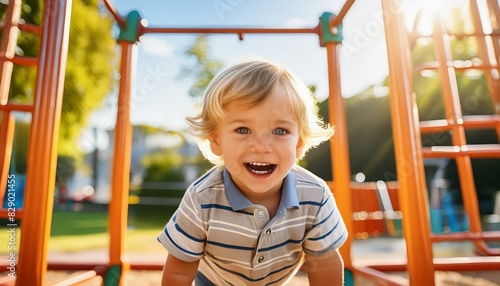 Fototapeta premium Smiling child playing in the park on a sunny day.