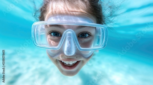 © Kaminashi Nozomi, Fototapeta premium Smiling child underwater with snorkel gear
