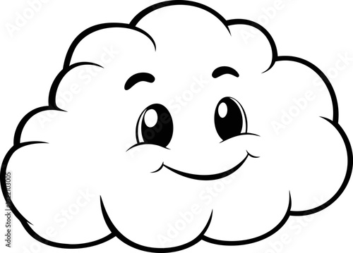 Obraz premium Smiling cloud with cute face in black and white line art illustration. Vector illustration