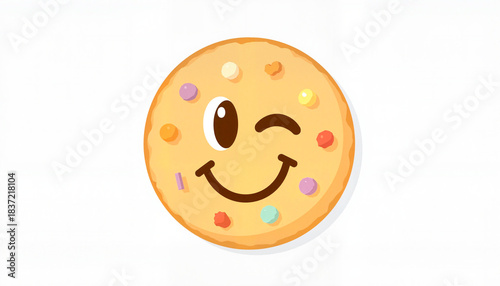 Fototapeta premium Smiling cookie with colorful toppings on white background