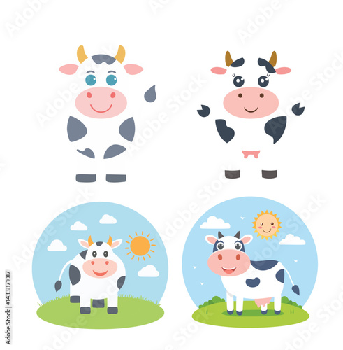 © Designer_Shimul, Obraz premium Smiling Cow in Peaceful Meadow Vector Bundle Set