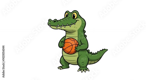 Fototapeta premium Smiling crocodile cartoon character holding basketball
