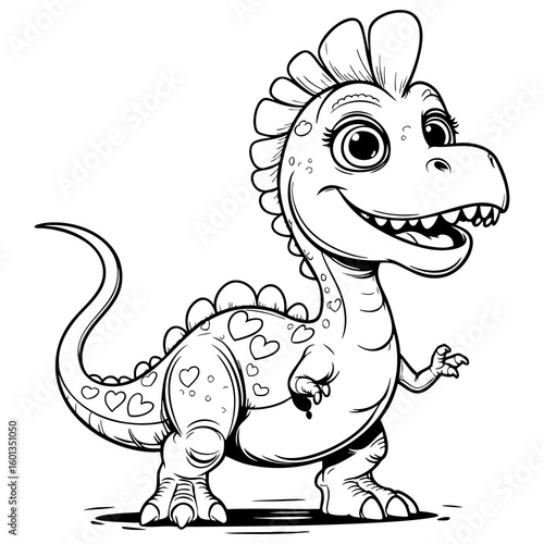 Fototapeta premium Smiling Cute Dinosaur with Heart Patterns on Body for Coloring Fun