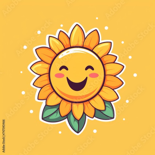 © ArtisanSamurai, Fototapeta premium Smiling 2D-style sun holding a flower.