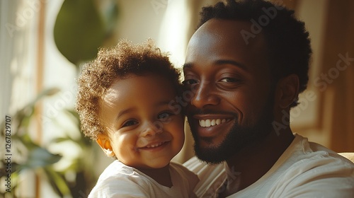 © AdorStudios, Fototapeta premium smiling dad and little kid son spending quality time together in living room parental love fatherhood and child bonding moment at home