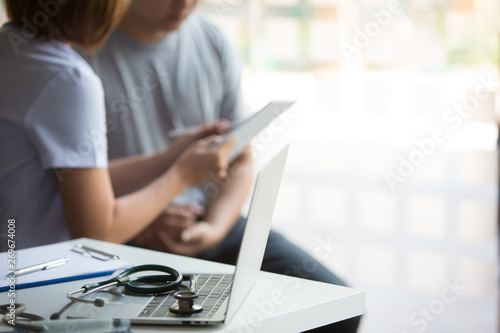 © Morakot, Fototapeta premium Smiling doctor and patient are discussing something