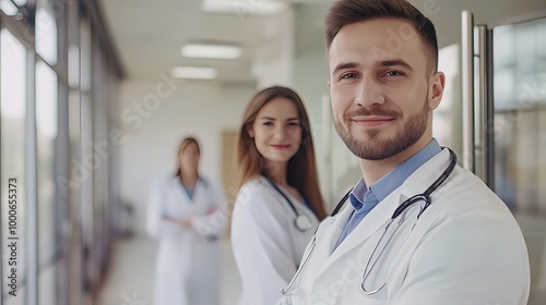 Obraz premium Smiling Doctor in a Hospital Corridor
