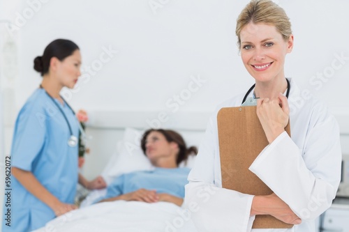 © WavebreakmediaMicro, Obraz premium Smiling doctor with patient in hospital