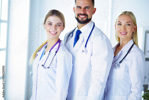 © lenets_tan, Fototapeta premium Smiling doctors all standing together as they work.
