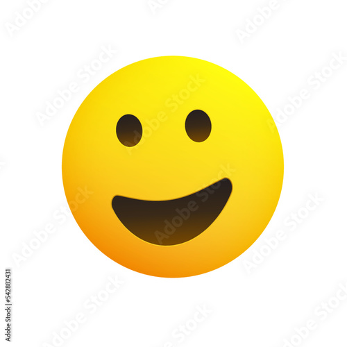 Fototapeta premium Smiling Emoji - Simple Happy Emoticon with Open Eyes Isolated on White...