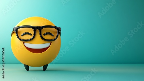 Fototapeta premium Smiling Emoji With Glasses On A Teal Background