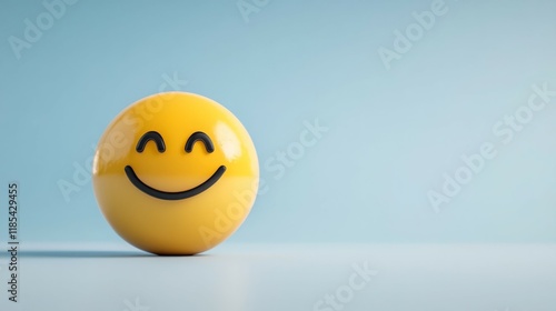 Fototapeta premium Smiling emoticon on a light blue background. Positive vibes!