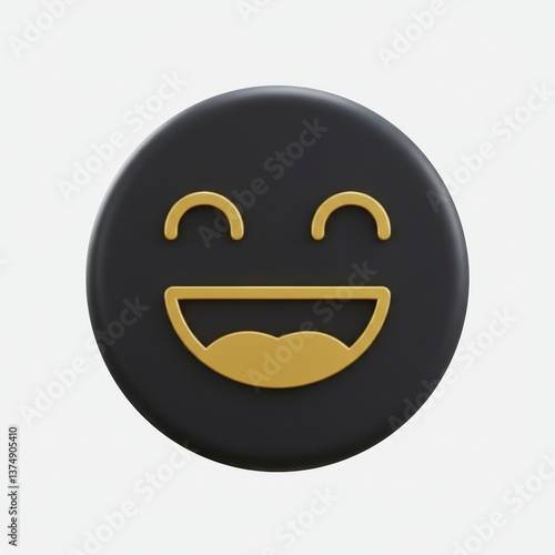 © Manji, Fototapeta premium Smiling Emoticon Render with Golden Elements on Clean White Background