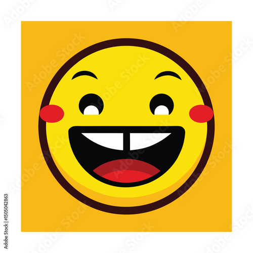 © Salim, Fototapeta premium Smiling face emoji with rosy cheeks expressing happiness and joy on yellow background