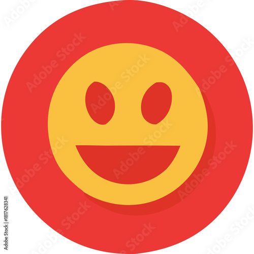 © isna, Fototapeta premium Smiling Face Icon With Red Circle Border And Yellow Center On Transparent Background With Subtle Shadow Effect