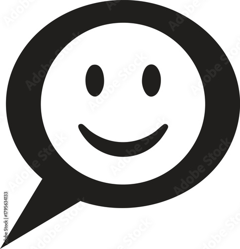 Fototapeta premium Smiling face in speech bubble icon conveys positive communication and feedback message