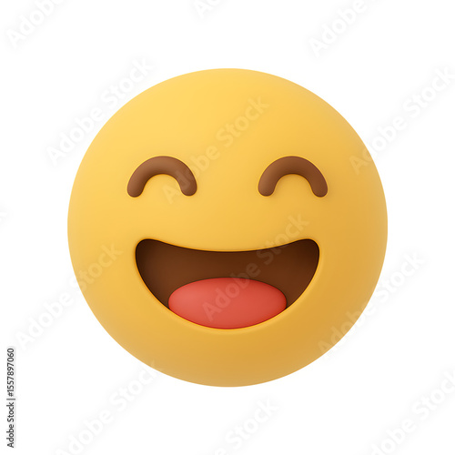 Fototapeta premium Smiling Face with Open Mouth and Smiling Eyes Emoji Illustration Transparent...