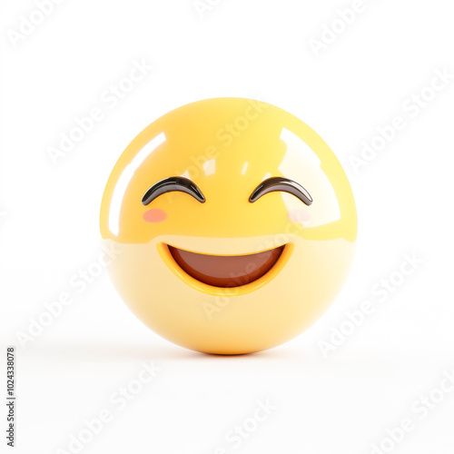 © Vooglo.com, Fototapeta premium Smiling face with smiling eyes, 3D emoji isolated on white background, front view, emoji style