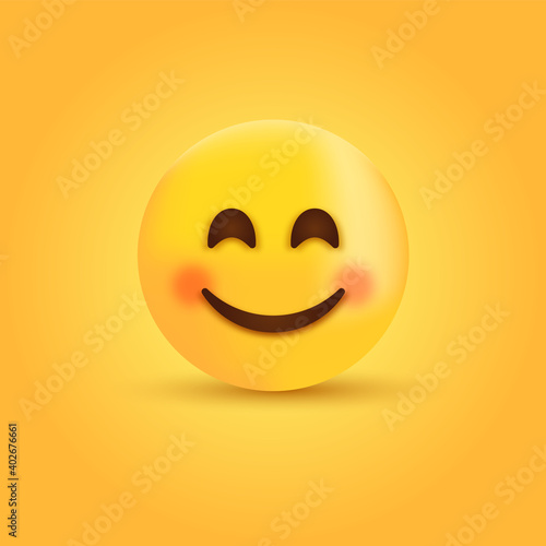 Fototapeta premium Smiling Face with Smiling Eyes, 3d happy Smiley emoji, cute emoticon with cheeks