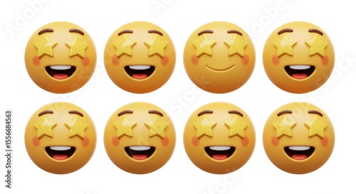 © Sami, Fototapeta premium Smiling faces with stars emoji set