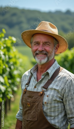 Fototapeta premium Smiling farmer in a vineyard