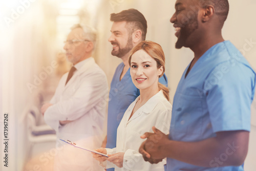 Fototapeta premium Smiling female person looking straight