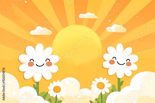 © A to Z, Fototapeta premium smiling flowers on yellow background.