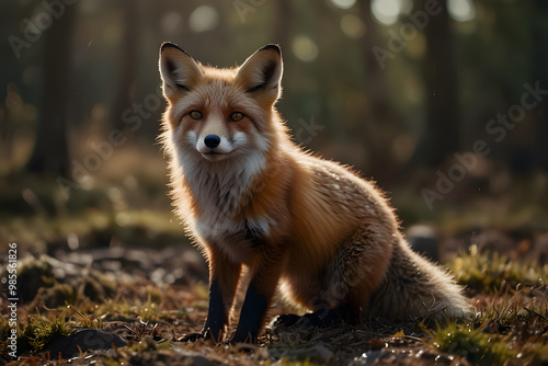 © lwin, Fototapeta premium Smiling Fox: A cute, bushy-tailed fox with a bright smile and sparkling eyes