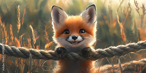 © Ahmad, Obraz premium Smiling Fox Clinging to a Rope in the Wild