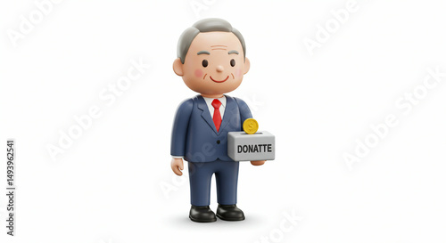 © MuhammadFaisol, Obraz premium Smiling gentleman holds donation box