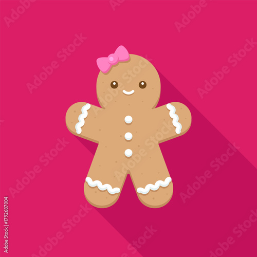 © lukpedclub, Fototapeta premium Smiling gingerbread girl with pink bow on bright pink background