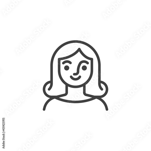 © alekseyvanin, Fototapeta premium Smiling girl avatar line icon