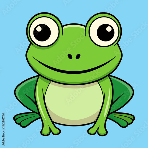 © Yasin, Obraz premium Smiling green cartoon frog with big eyes on blue background