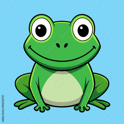 © Yasin, Obraz premium Smiling green cartoon frog with big eyes on blue background