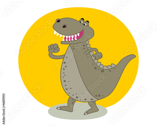 Obraz premium Smiling grey crocodile dinosaur with large pointed teeth and yellow decoration