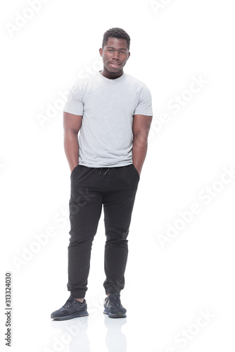 Fototapeta premium smiling guy in a white t-shirt. isolated on white