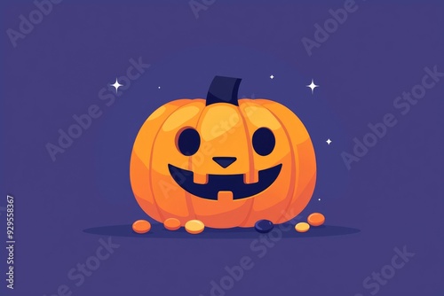 © Tung's companion, Fototapeta premium Smiling Jack-o'-Lantern with Candy on Purple Background