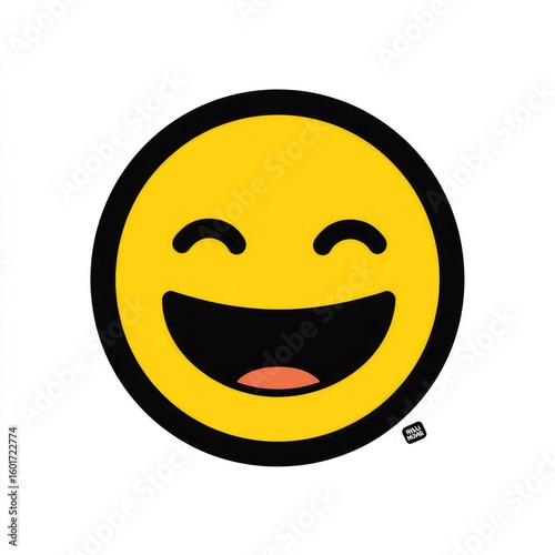 © Khalid, Fototapeta premium Smiling, laughing emoji. Yellow face with black outline