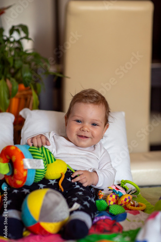 © Lucky Fenix, Obraz premium Smiling little girl is playing with baby toy.Little toddler