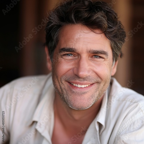 © Darya, Fototapeta premium Smiling Man in Light Shirt
