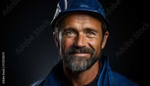 Fototapeta premium Smiling man with beard exudes confidence in studio shot generated by AI